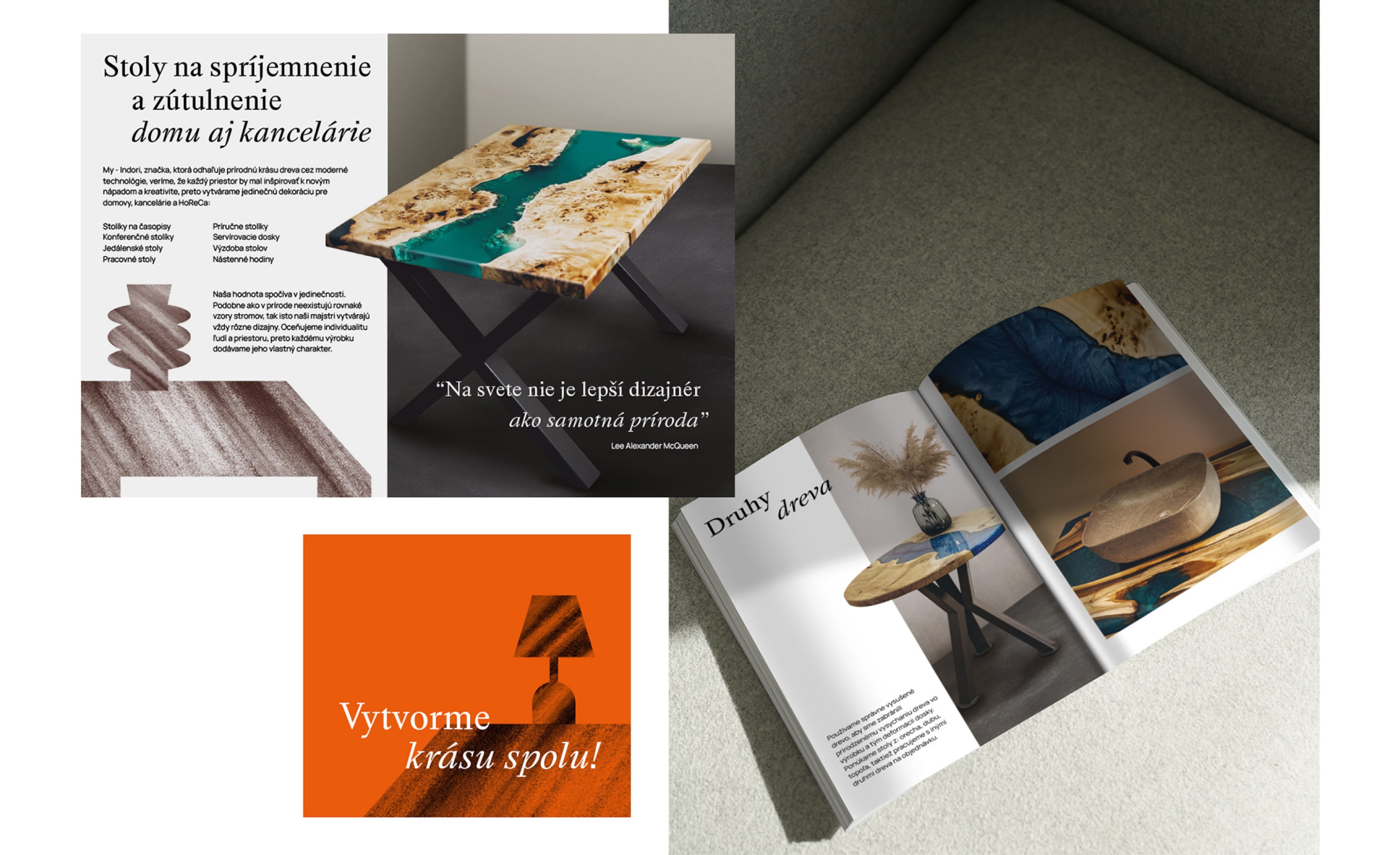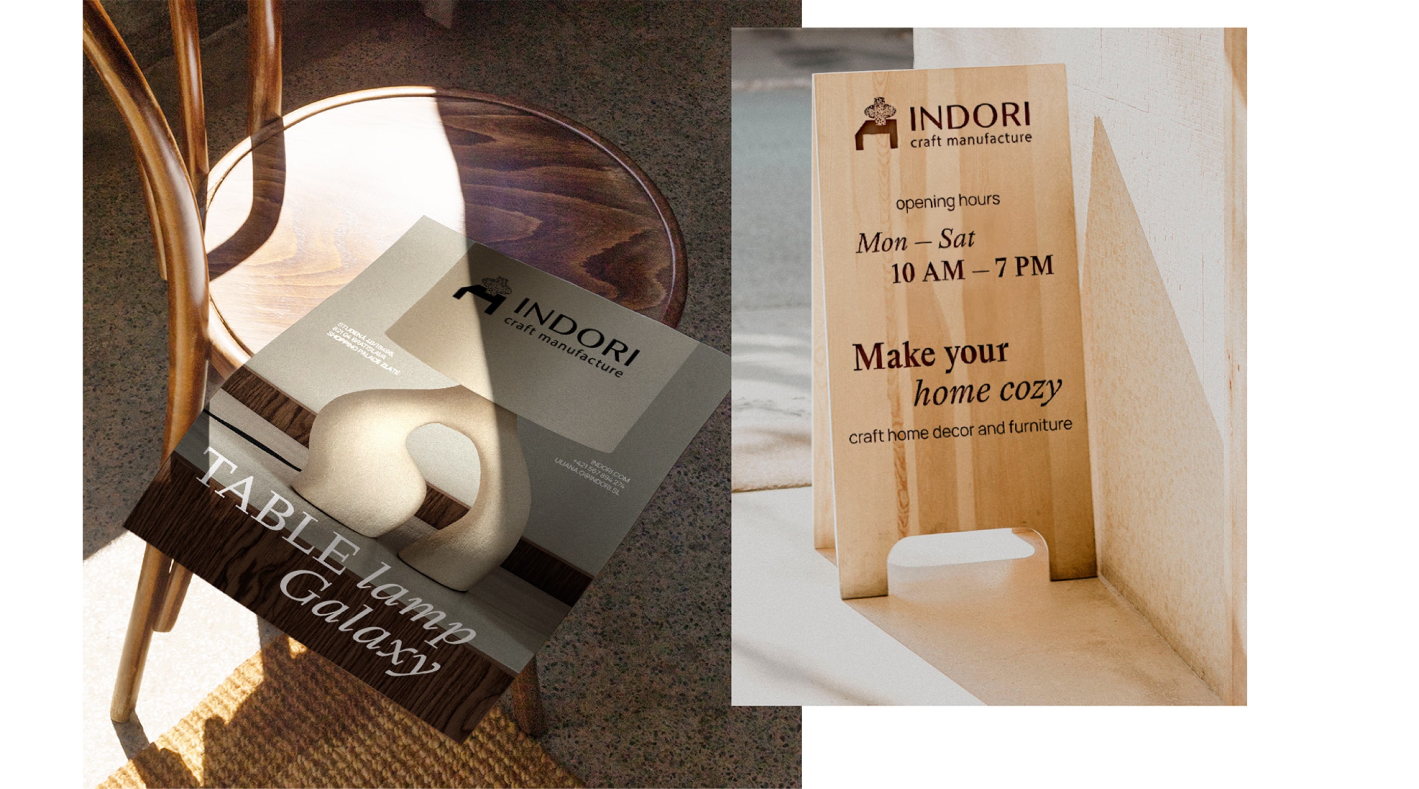 Також майстри «Indori» створюють крафтові декори для дому та офісів. Як у природі не існує однакових візерунків дерева, так вироби бренду завжди мають різний дизайн. Адже найважливіше для «Indori» — це індивідуальність, тому кожен виріб наділений своїм персональним характером. Моїм завданням було розробити фірмовий стиль з вишуканим характером та натяком на крафтовість та унікальність виробів.