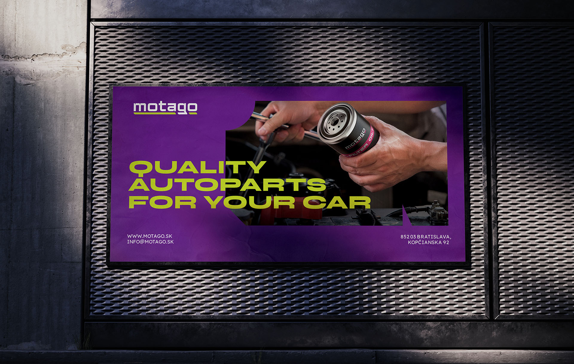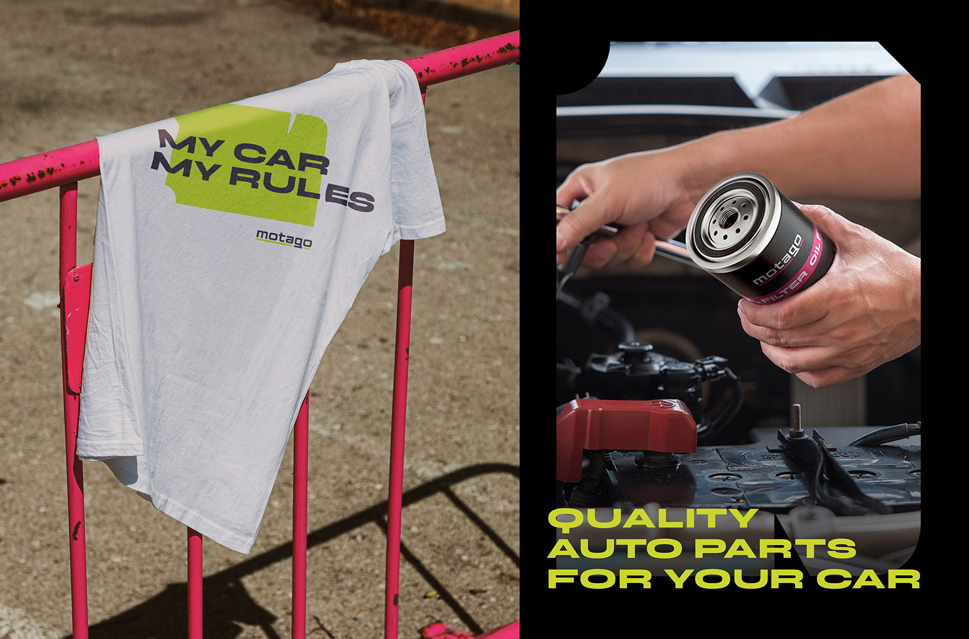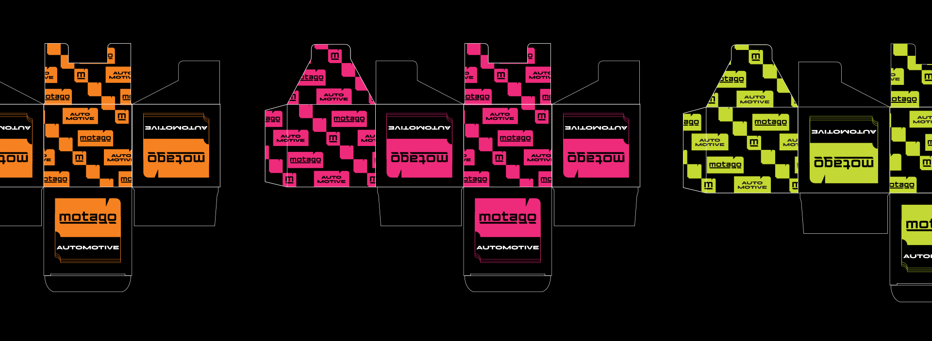 На думку клієнта логотип та фірмовий стиль мали б нести сучасний, молодіжний та сміливий характер. Тому основою для створення логотипа став впізнаваний стилізований шрифтовий напис, що додає йому автомобільного характеру та асоціюється із технологічністю. Підкреслення у вигляді кольорового графічного елемента символізує швидкість та рух. Цей елемент слугує також кольоровим ідентифікатором для суббрендів. Для виразності візуального стилю ми розробили графічні елементи за мотивами стилізованих літер — це характерні плашки, які можна відворювати заливкою або лінійно для імітації швидкості. Це рішення є функціональним та лаконічним, оскільки такий дизайн легко адаптувати на рекламні носії, а також на різні типи паковання. Котрастна кольорова гама вдало виділяє бренд серед конкурентів.